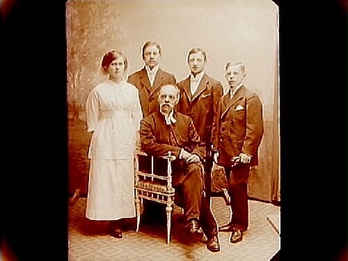 Fyra konfirmander och kyrkoherde A. Lönroth.