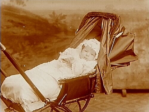 Ett litet barn i barnvagn.