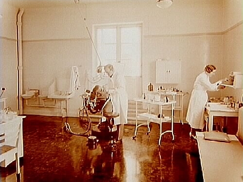 Engelbrektsskolan, skoltandvården, interiör, 3 personer.