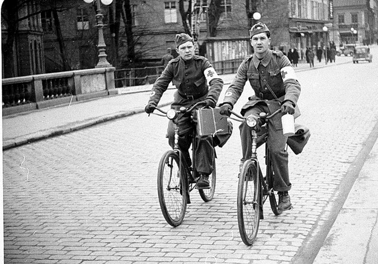 "Lilla Larsson" och Lars Anderås i väntan på transport till Skåne ca 15 april 1940.