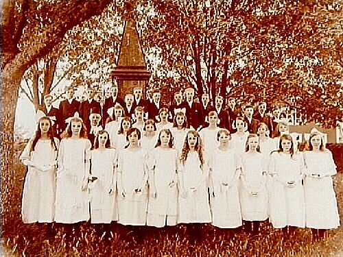 Glanshammar konfirmander, 20 flickor, 16 pojkar och prästen.