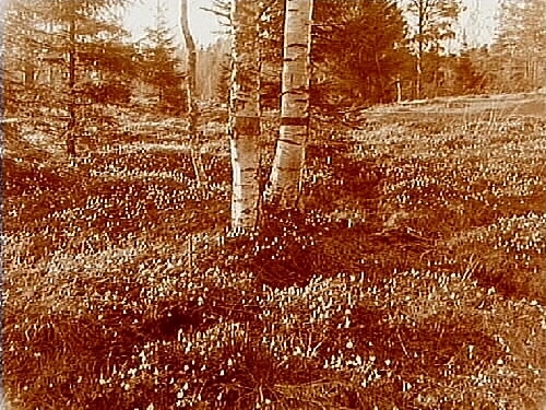 Blommande vitsippor i hagen.