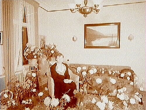 Titel: Telefonist fröken Ebba Dahlkvists 50 årsdag. Rumsinteriör, en kvinna.