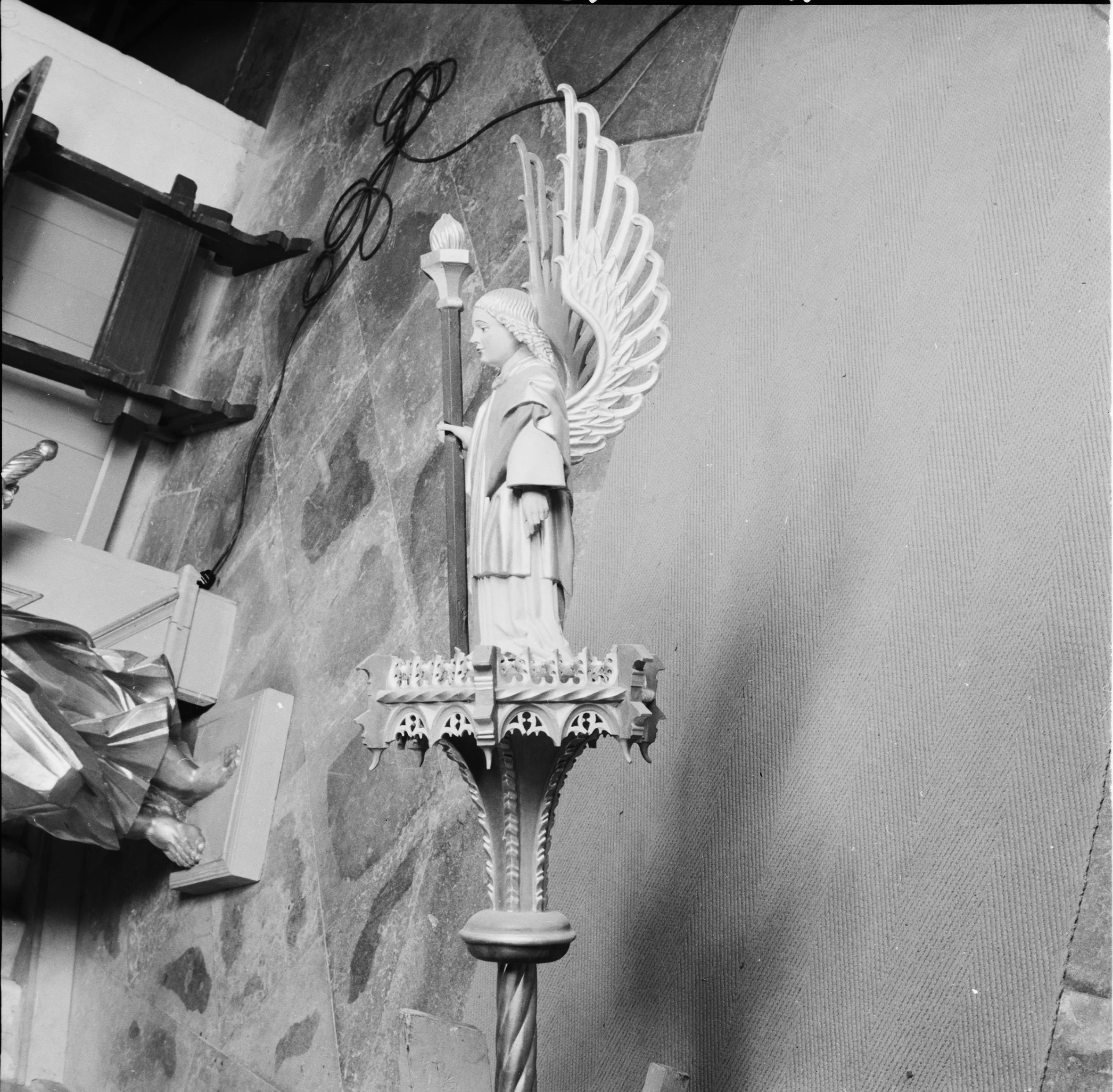 Ljusstavskrön av förgyllt och målat trä, senmedeltida.