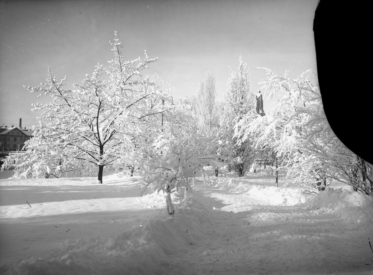 Vintermotiv, Centralparken med Karl XIV Johan statyn.