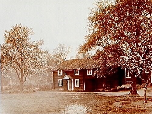Tvåvånings knuttimrat, vinkelbyggt bostadshus.