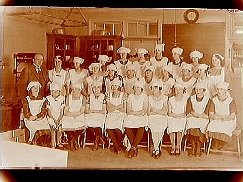 Trädgårdsskolan, skolköket, 24 skolflickor.