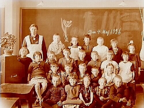 Engelbrektsskolan, klassrumsinteriör, 23 skolbarn med lärare, klass 1, sal 6.