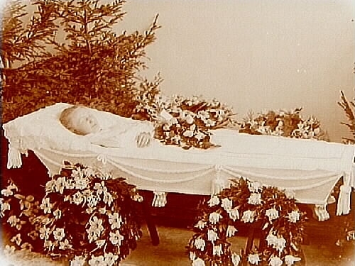 Kvinnolik i öppen kista.