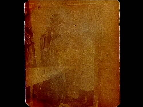 Skofabriken Örnen, interiör, en man vid skomaskin.