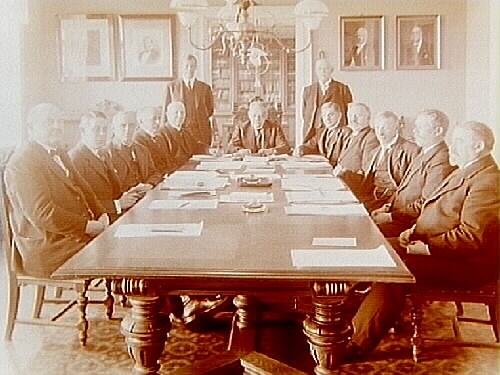 Förvaltningsutskotet, 13 herrar vid bordet.