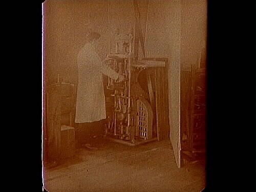 Skofabriken Örnen, interiör, en man vid skomaskin.