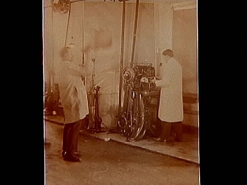 Skofabriken Örnen, skofabriksinteriör, två män.