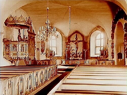 Interiör av Norra Fågelås kyrka.