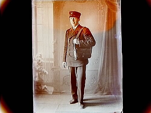 En man, brevbärare.