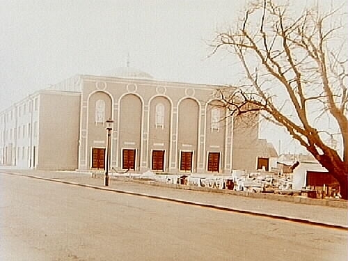 Konserthuset, stenhus i tre våningar med klassicerande fasad i grov puts.