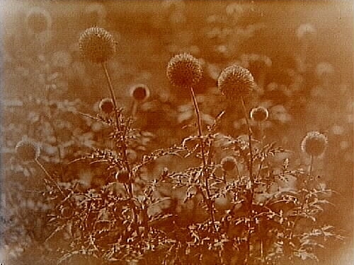 Titel: Blommande tistel.
