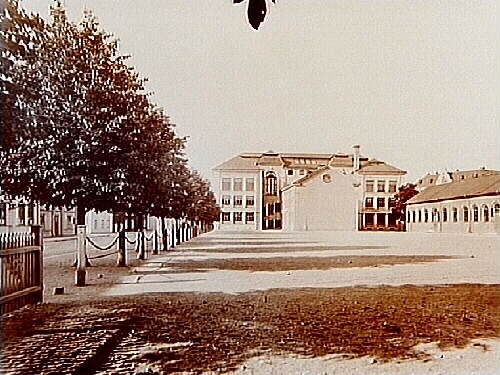 Karolinska skolan, trevånings skolbyggnad, envånings skolbyggnad.
