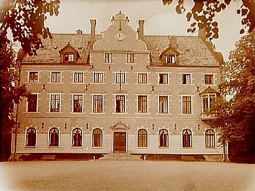 Djursholms Slott, trevånings slottsbyggnad med frontespis.