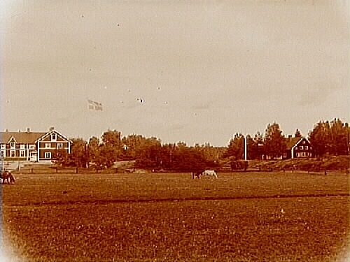 Ljusterö kyrkskola. Ålderdomshemmet till höger, byggnader.