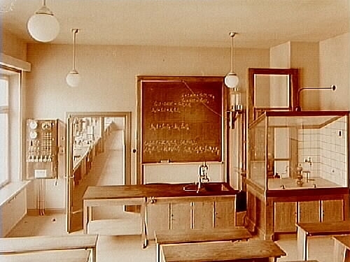 Karolinska Läroverket, kemisk lärosal, interiör.