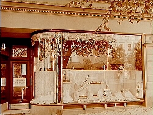 Nya Linne & Vitvarumagasinet, skyltfönster.
