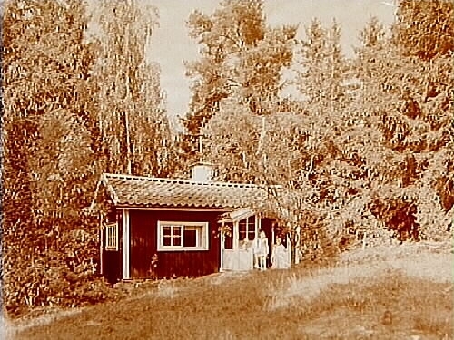 Lekstuga och tre barn.