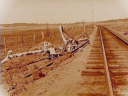 Olycka vid spåret, nedkörd luftledning.