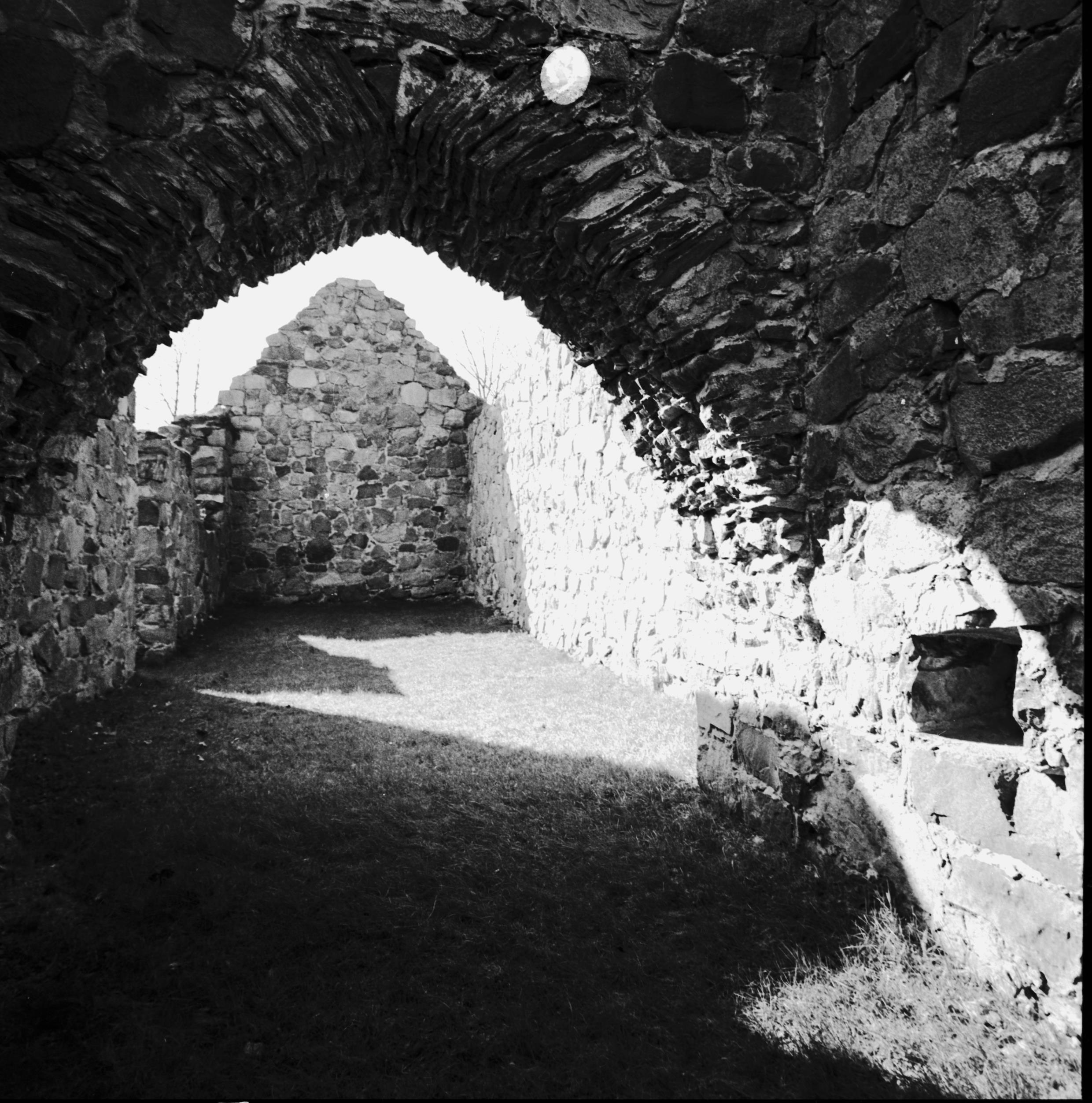 Kyrkoruinen, interiör mot väster.