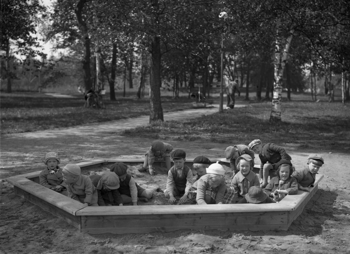 13 småbarn i sandlådan.