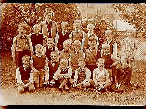 Engelbrektsskolan, 19 skolbarn med lärarinna fröken Eva Söderkvist, sal 6.