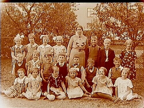 Engelbrektsskolan, 20 skolbarn med lärarinna fröken Astrid Vidén, sal 16.