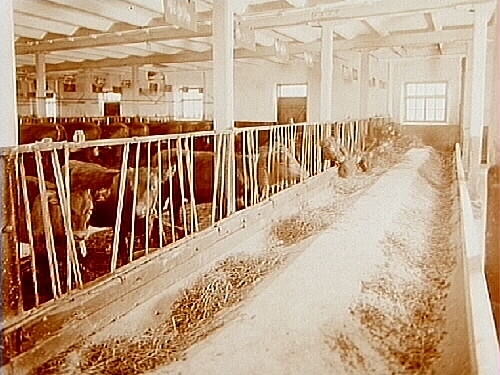 Falkenå herrgård, ladugårdsinteriör, kor.