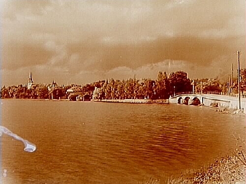 Lindesbergs kyrkan till vänster och till höger bron St. Lindesjön.