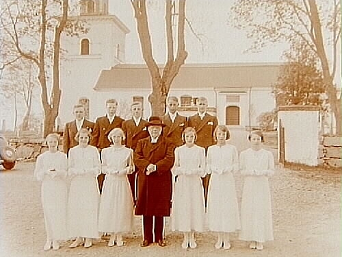Konfirmander, 6 flickor, 5 pojkar och pastor Thorman.