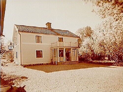 Tvåvånings bostadshus med veranda och balkong.