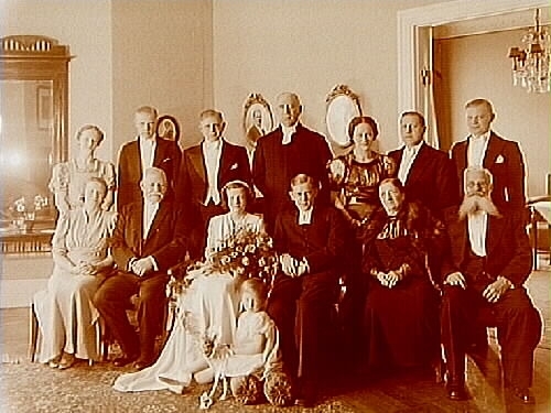 Bröllop, brudpar och bröllopsgäster.