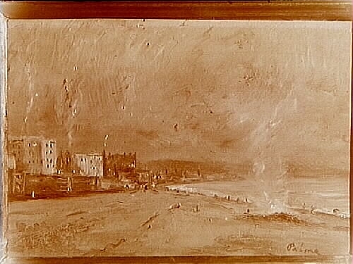 Oljemålning. Motiv: Landskap, av konstnären Palme.