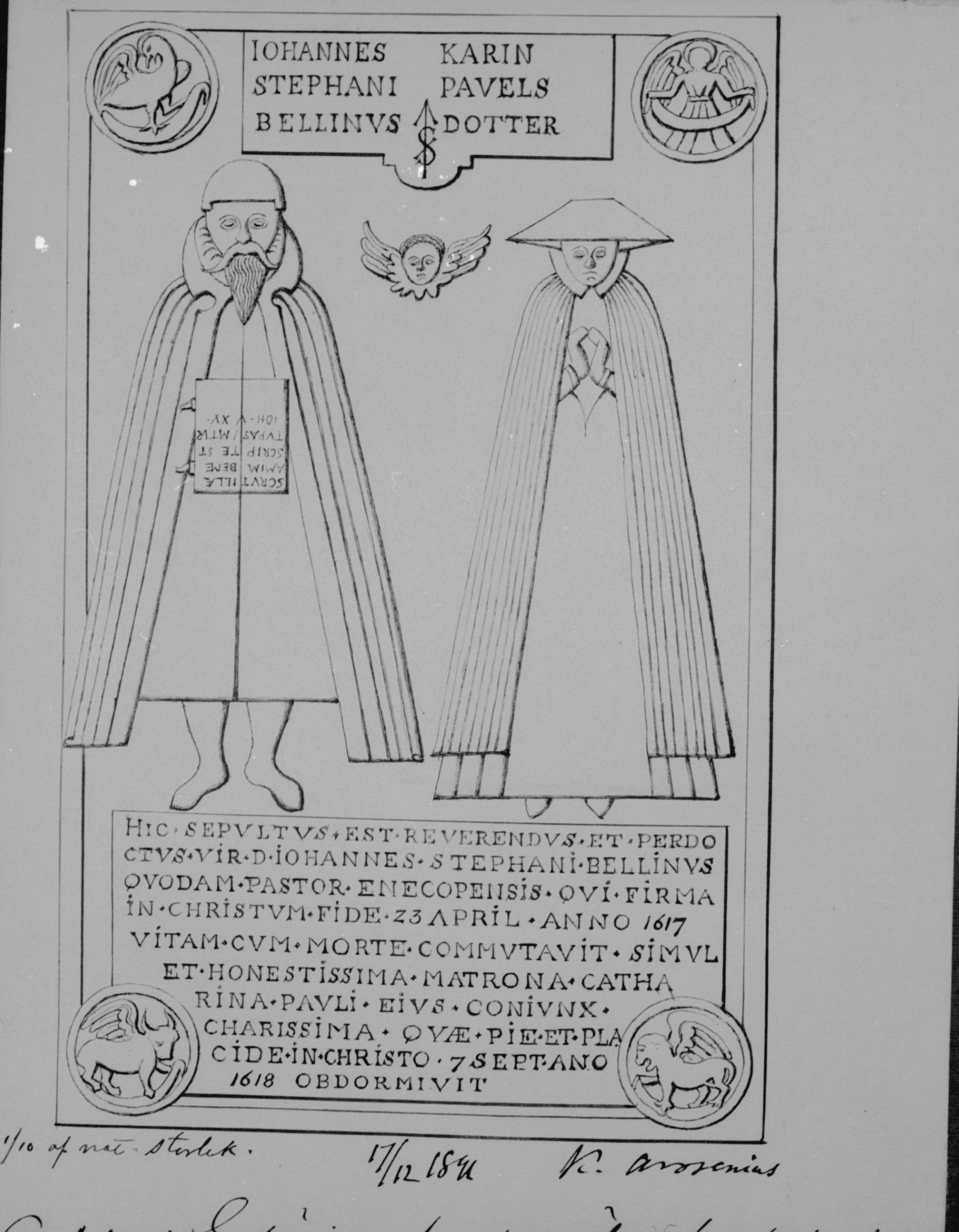 Gravhäll över Johannes S. Bellinus med familj. Fotograferad ritning 1/10 1891 av Karl Arosenius.