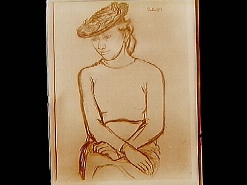 Motiv: sittande kvinna med hatt.