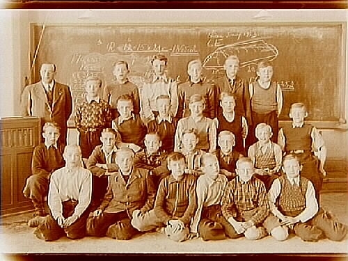 Engelbrektsskolan, klasrumsinteriör, skolbarn med lärarinna N. Bäck, klass 6E, sal 20.