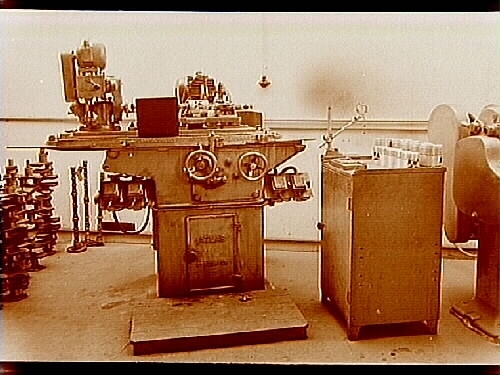 AB Motorrenovering, interiör från maskinhallen, kolvslipmaskin.