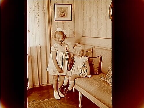 Rumsinteriör, 2 barn, fru Königs flickor.
