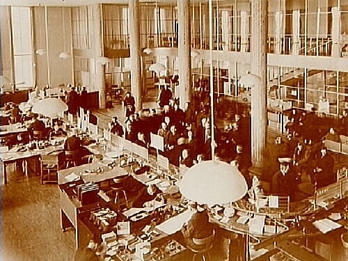 Interiör av banklokalen, Örebro Sparbank, filialen i Örebro.