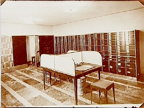 Interiör av banklokalen, depositionsvalvet, Örebro Sparbank, filialen i Örebro.