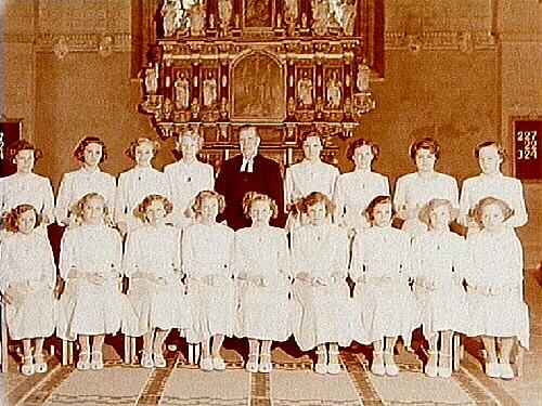 Konfirmander, 17 flickor och pastor Benny Benktson.