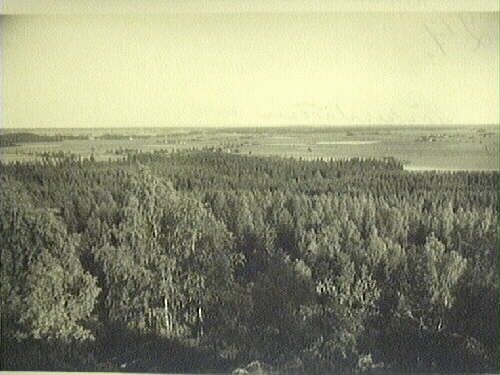 Närkesslätten, utsikt från Uggleberget vid Klockharmmar mot Kils kyrka och Örebro.