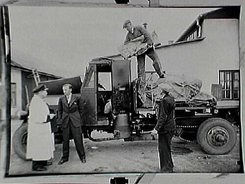 AB Gasgeneratorn. Gengasdriven lastbil + 4 män. Vasagatan 13.