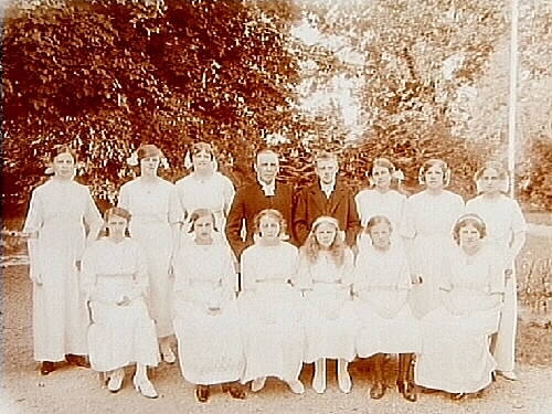 Almby läsbarn, privata konfirmander, 13 ungdomar och en präst.
