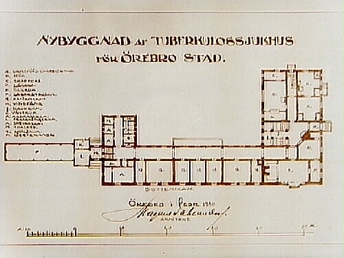 Ritning, nybyggnad av tuberkulossjukhuset i Örebro.